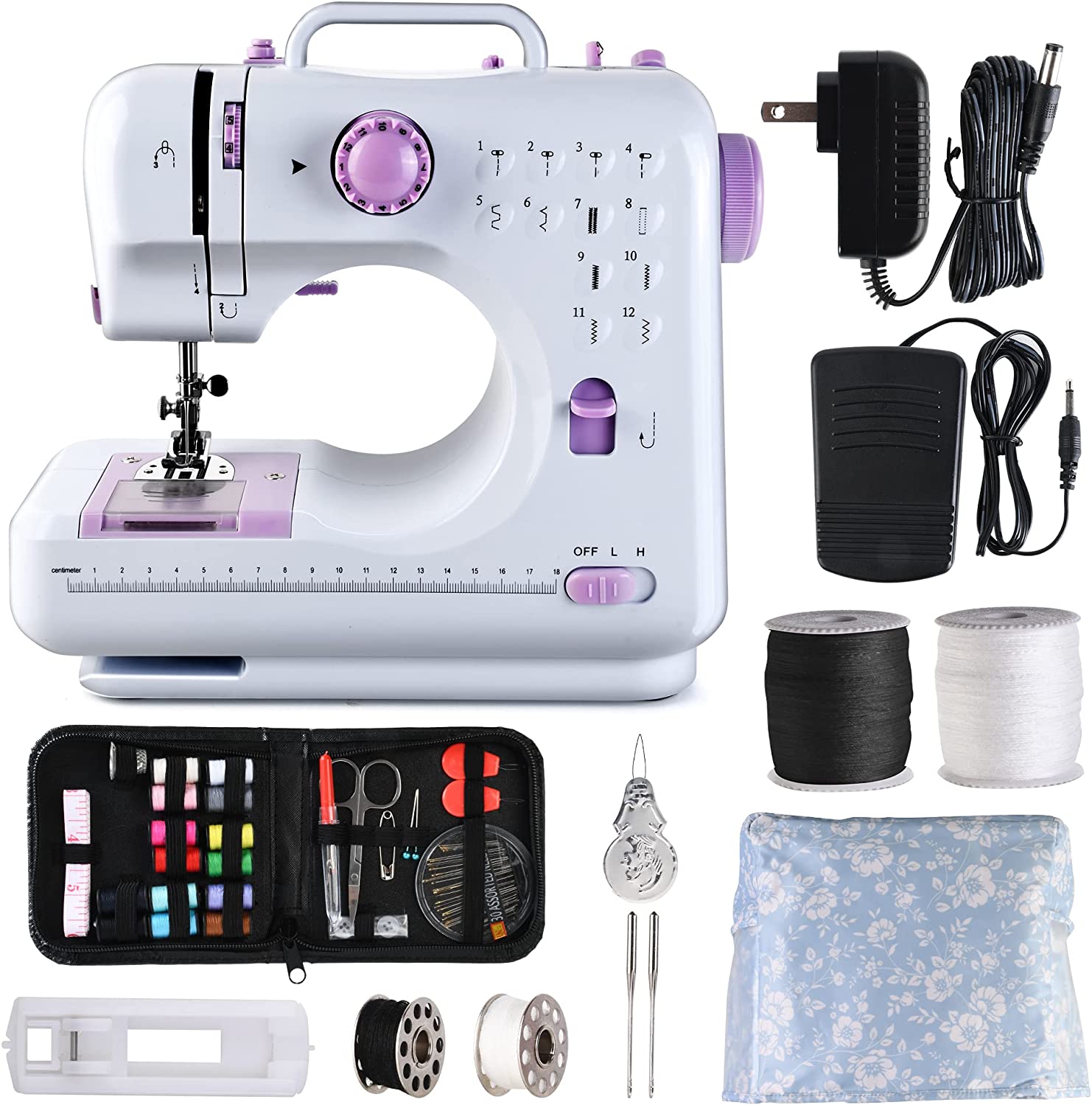 JUCVNB Mini Sewing Machine for Beginners and Kids, Sewing Machines with Reverse Sewing and 12 Built-in Stitches, Portable Sewing Machine with 27 Pieces Accessory Kit Included 2 Speed with Foot Pedal