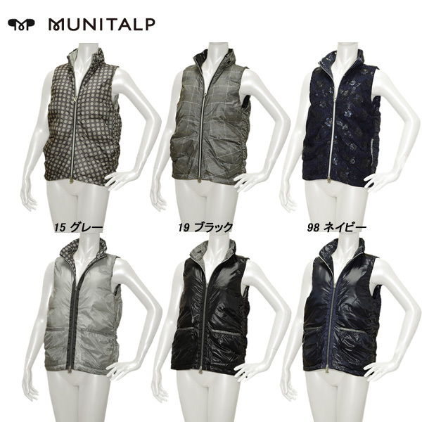 ムニタルプ MUNITALP レディース 秋冬 撥水 フード付 中わた リバーシブルベスト