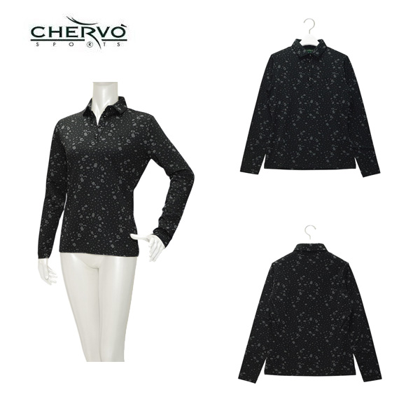 シェルボ CHERVO レディース 秋冬 スノーレオパード柄 保温 断熱 裏起毛 ストレッチ長袖ポロシャツ