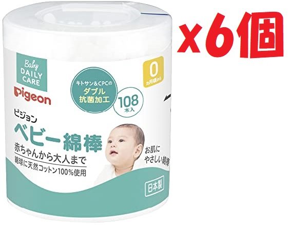 6個セット ピジョン ベビー綿棒 108本入 管理記号:2F-C