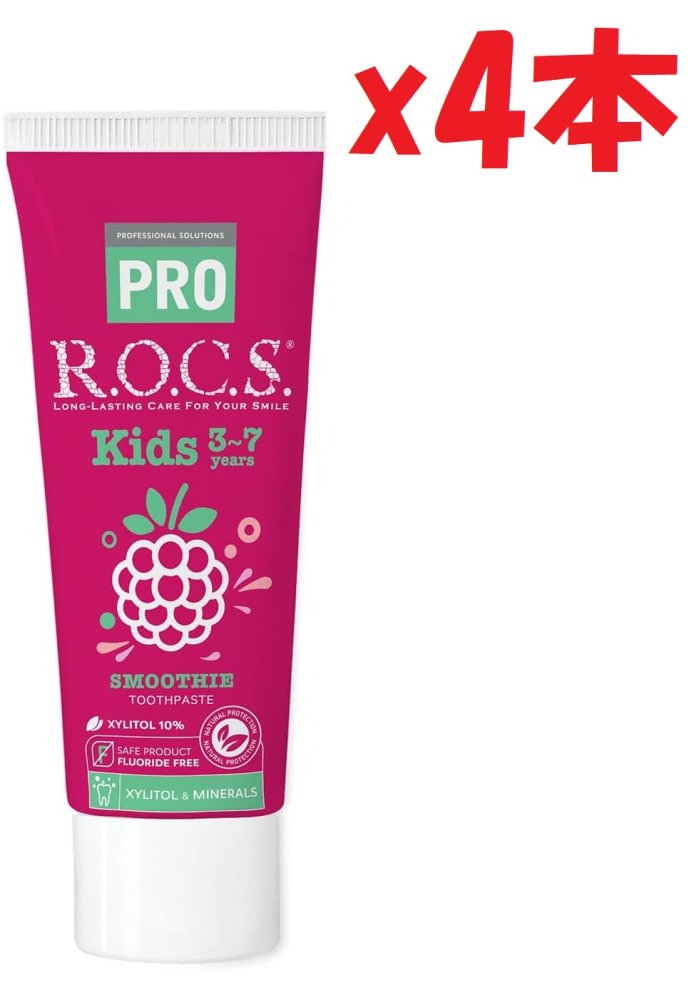 4本セット R.O.C.S. ロックスPRO キッズ(3〜7才) ラズベリースムージー味【ミネラル配合】フッ素不使用 こども歯みがき 45g lim9