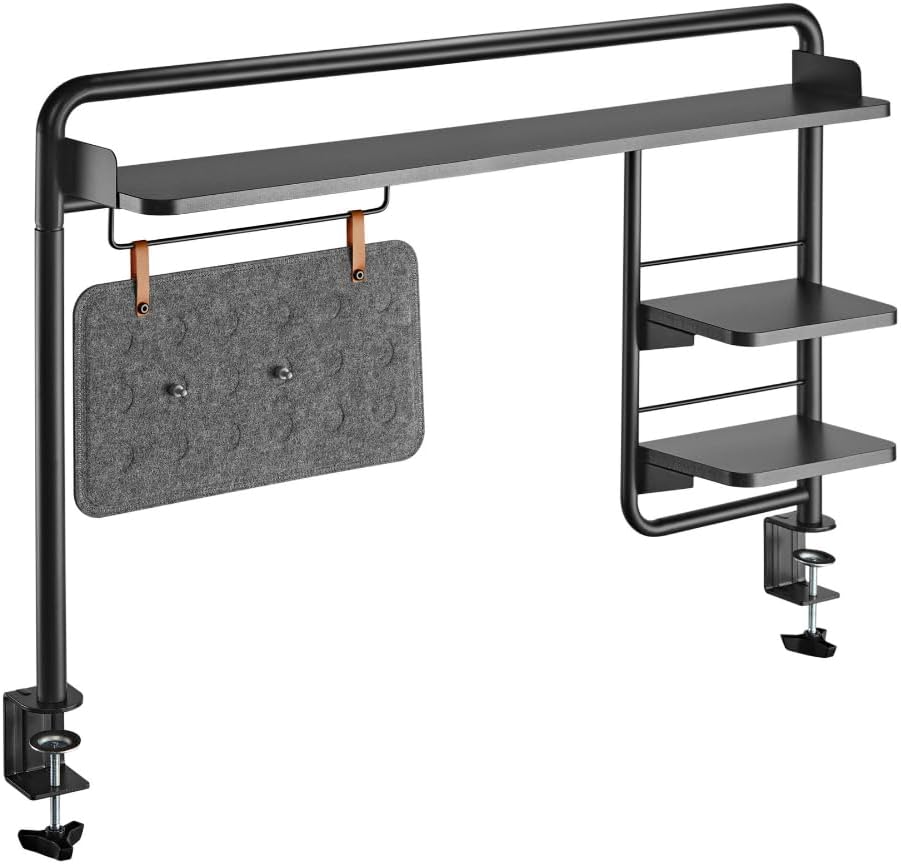 取り付け簡単なクランプ式】机に設置して収納スペースを拡張できる机上ラックです。クランプで固定できるのは有効奥行4cm以上、天板の厚さ5cm以内のデスクに取り付けられます。