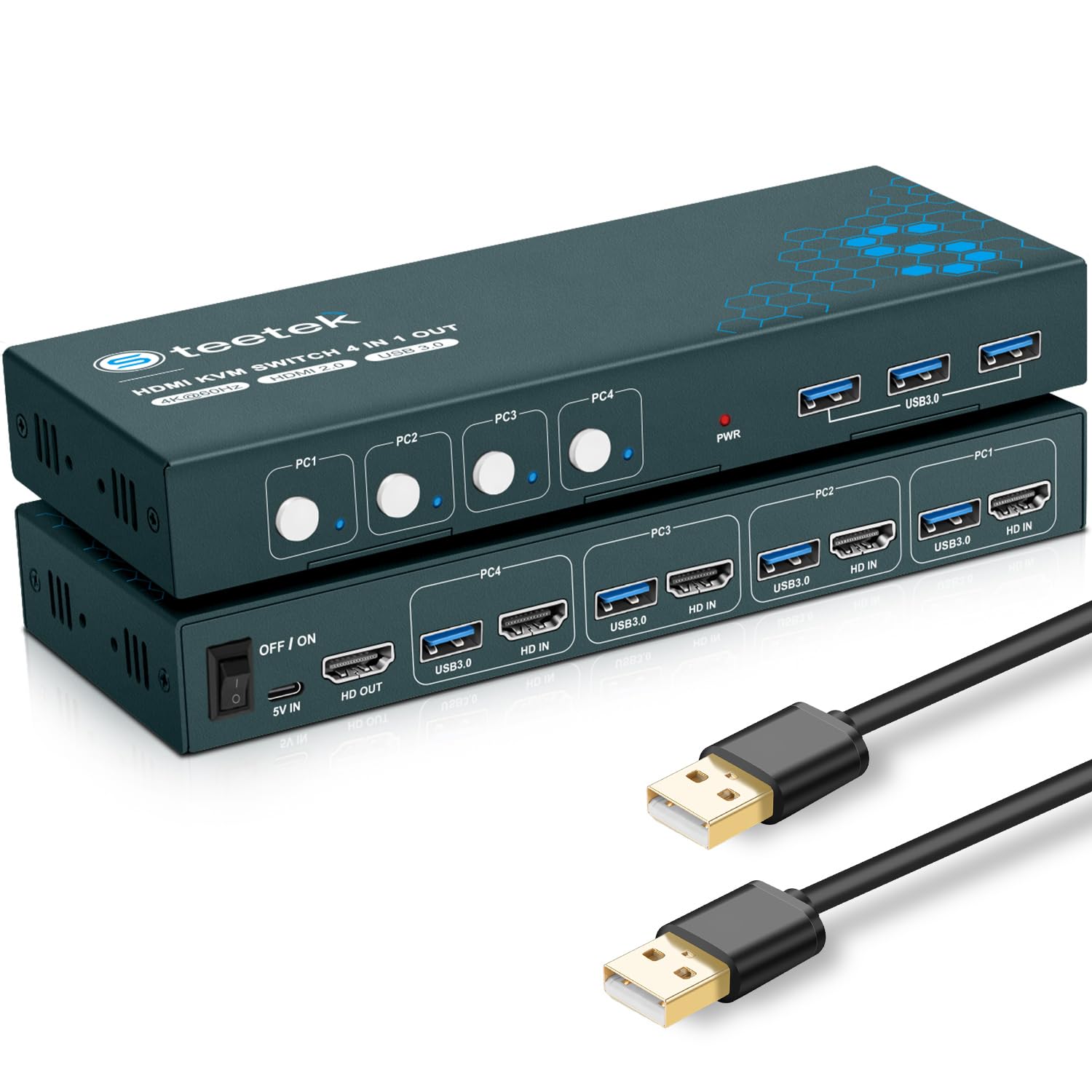 - 【USB 3.0ポート】HDMI KVMスイッチは4つの入力と1つの出力をサポートし、最大5Gbpsの高速データ転送を実現する3つのUSB 3.0ポートを備えています。これはUSB 2.0の10倍の速度です。外付けハードドライブ、プリンター、キーボード、マウスなどのUSBデバイスを4台のPC間で簡単に共有できるため、生産性が向上します。