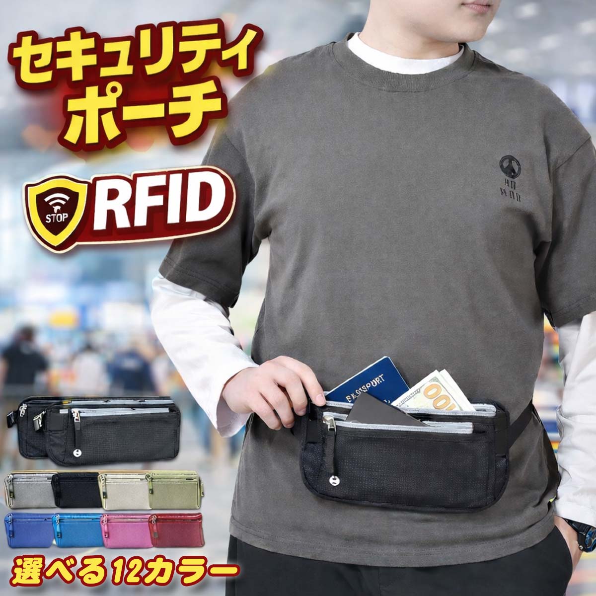 セキュリティポーチ 防犯 スキミング防止 ポーチ ウエスト 海外旅行 旅行 ショルダー パスポートケース 貴重品 マネーベルト