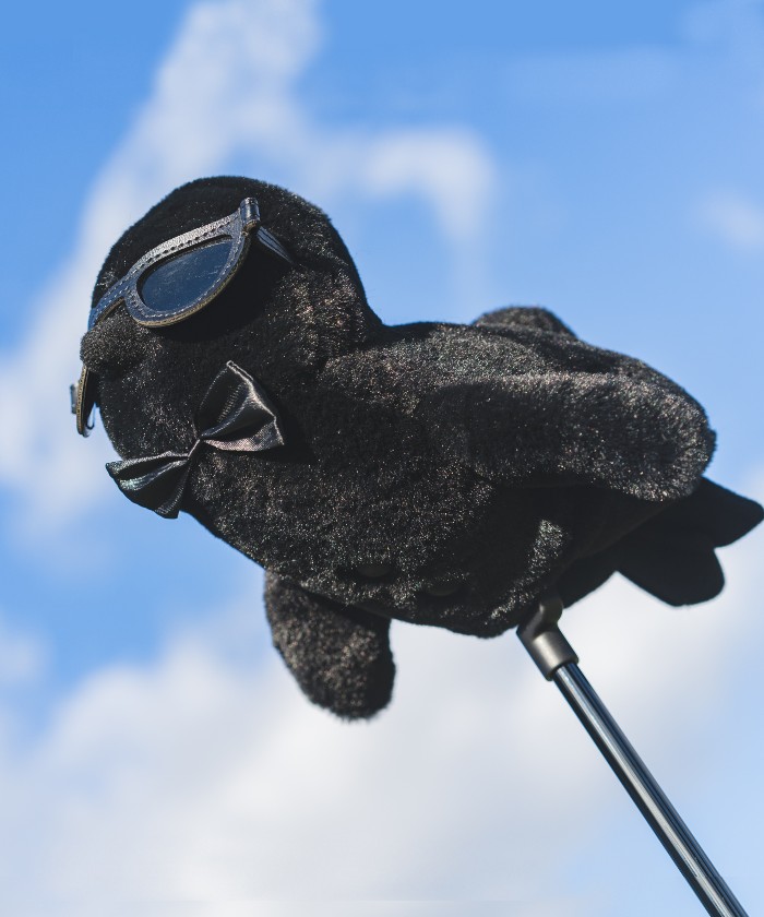 ・ペンギンがキャディバッグから飛んでいるような、遊び心あふれるデザインです。