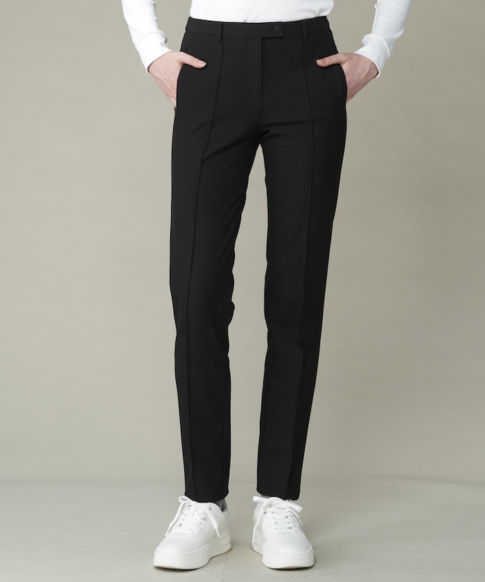 フロントセンターにピンタックを入れたすっきりしたシルエットのテーパードパンツです。
