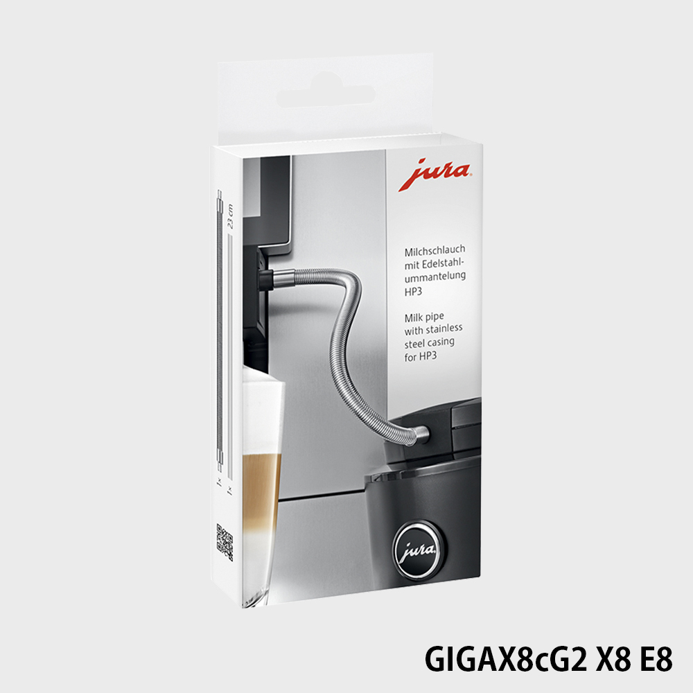 JURAのコーヒーマシンとミルクコンテナとをつなぐステンレスケーシングミルクパイプ。