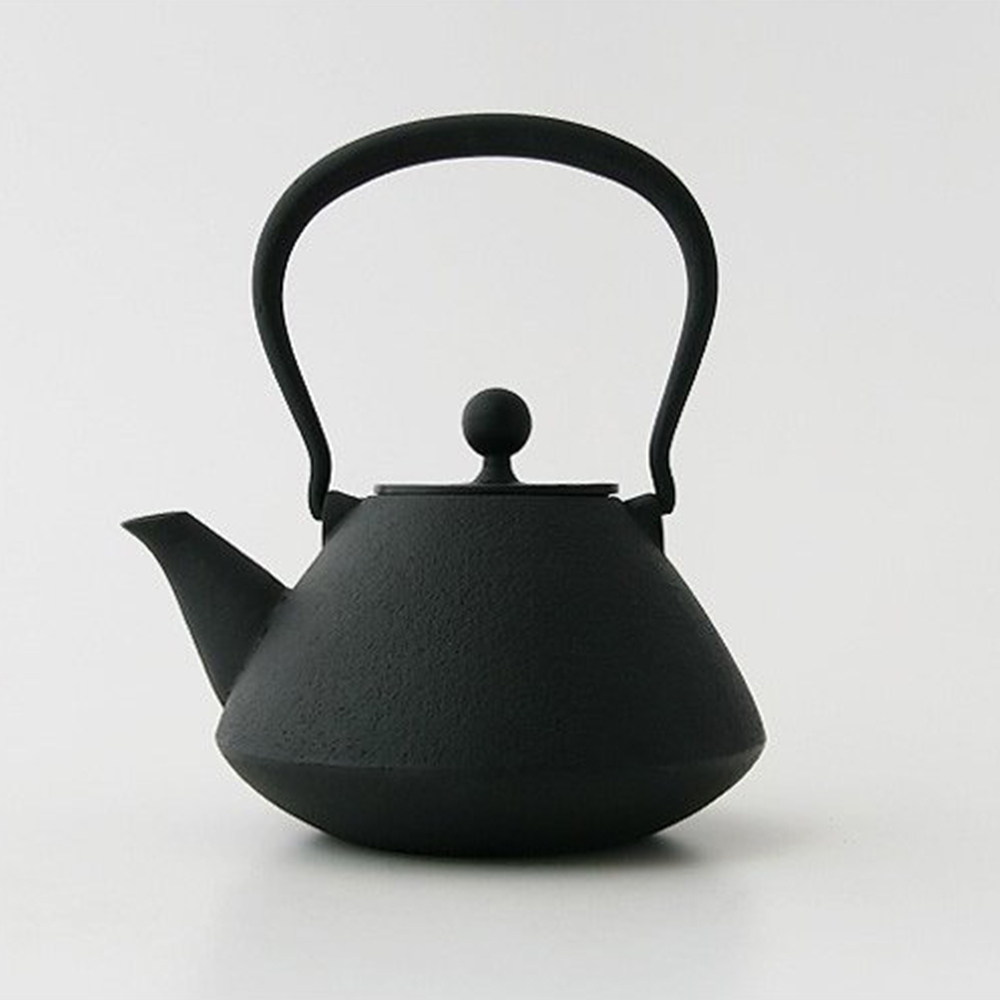 小笠原陸兆/南部鉄器 鉄瓶/末広 名前の通り、下部にいくにつれて綺麗な広がりのフォルムが美しい南部鉄器 鉄瓶。