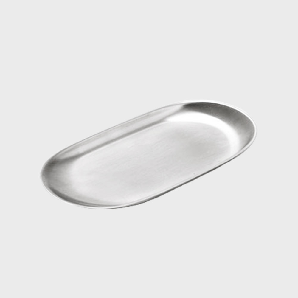 ジャパニーズ・モダンの先駆者ともいえる渡辺力デザインのシンプルモダンなユニトレー。一般的にはお店のキャッシュトレーとして使ったり、ペントレイ、キッチン小皿などと用途は様々。楕円トレイの左右、上下のなめらかな立ち上がりは、単に物が取りやすいだけの設計にとどまらず、なんとも言えない美しいラインを描いている。