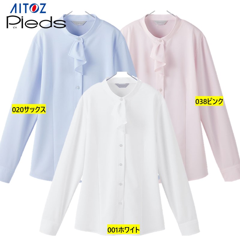 【17号,19号】事務服 女子服 オフィスウェア ニット ブラウス アイトス ピエ HCB4121 スタンドカラー 長袖ブラウス 17号,19号