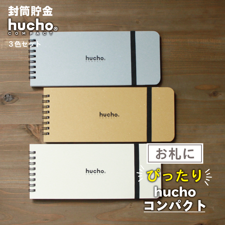 封筒で貯金ができる、お札にピッタリサイズのhuchoコンパクトです。