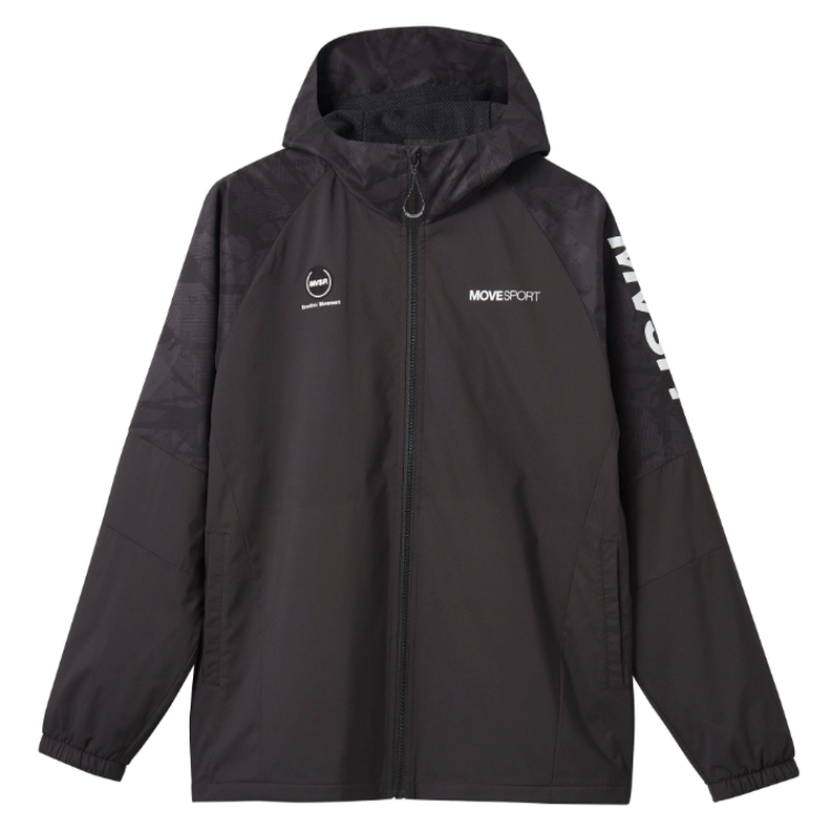 デサント独自の光を熱に変える発熱素材【HEATNAVI / ヒートナビ】を搭載した総柄グラフィックウィンドブレーカー。