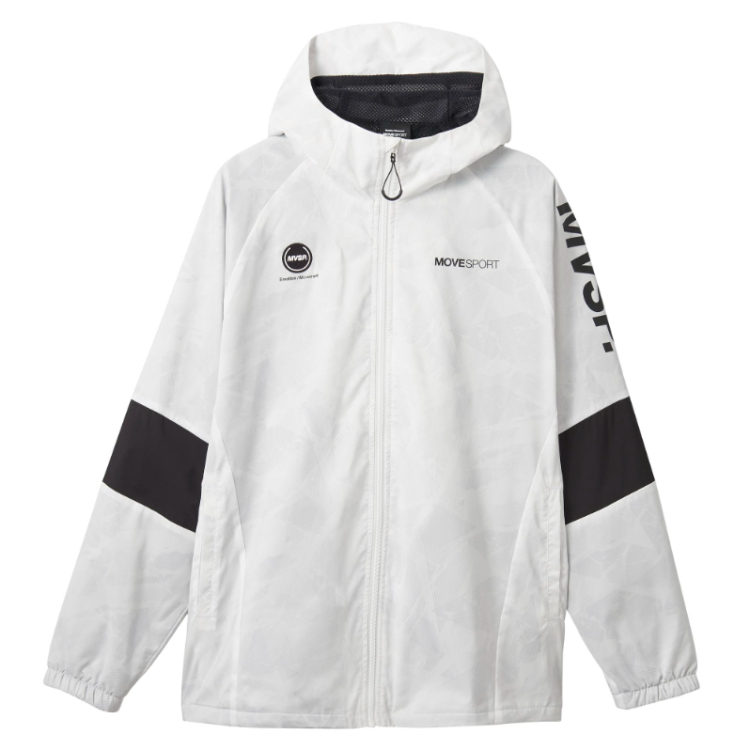 デサント独自の光を熱に変える発熱素材【HEATNAVI / ヒートナビ】を搭載した総柄グラフィックウィンドブレーカー。