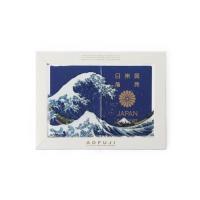 透明のパスポートケースに5年パスポートの藍色を入れると北斎の、「富嶽三十六景-神奈川沖浪裏」(アオフジ)が完成する、ユニークなパスポートホルダー。