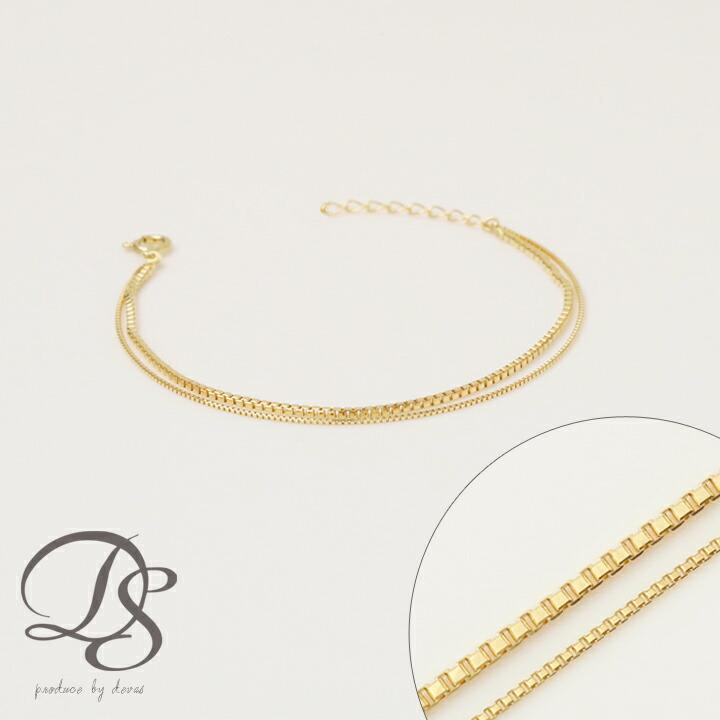 18金 ブレスレット k18 18金ブレスレット 18k レディース 2連 ベネチアンツイストチェーン 0.7mm ゴールド チェーン シンプル ブレスレットレディース 13cm 15cm
