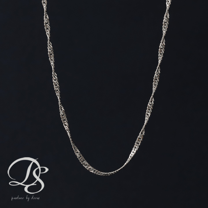 二重に編まれた『ダブルスクリュー』に光が反射し上品に輝き、当店の中でも特に人気のチェーン。