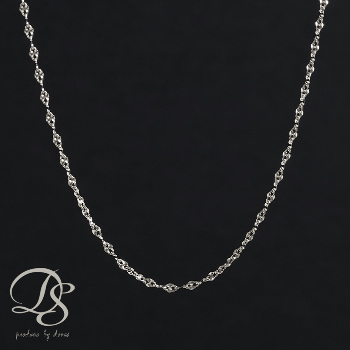 | PT850 BLOOM CHAIN NECKLACE スクリューチェーンのような『ひねり』と、ペタルチェーンのような『つぶし』を加えることで、華奢なチェーンながらも、まるで花が咲いたように、手元に彩りと華やかさを与えてくれるブルームチェーン。 1.6mm幅の細めのチェーンでも、コマ自体の表面積が広いため、光を綺麗に反射し輝く。華奢なチェーンが女性らしさを引き立ててくれる。 1本でさらりと着けたり、重ね着けやペンダントと組み合わせたりと、様々なコーディネートを楽しめる万能チェーン。 上質で繊細なチェーンは、まさに大人の女性のためのプラチナチェーンネックレス。 |