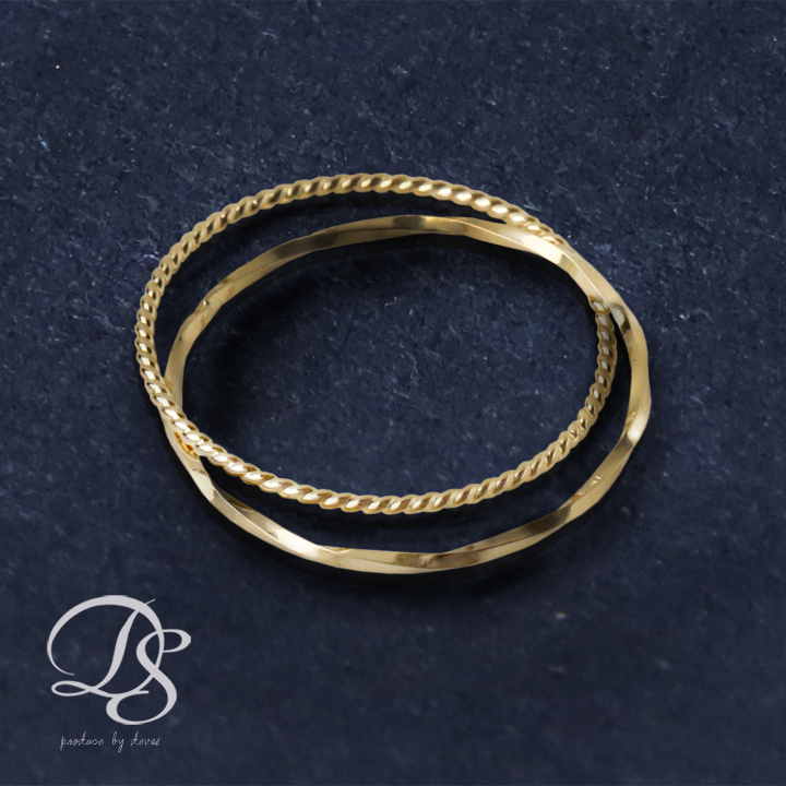 「螺旋状のねじれ」と「角状線の緩いひねり」のデザインリング。