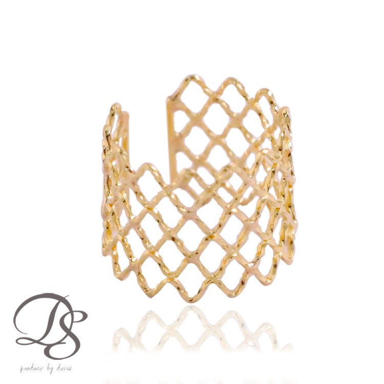 細かな線がメッシュの様なレース仕立てになっているイヤーカフ。