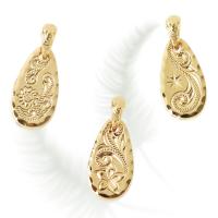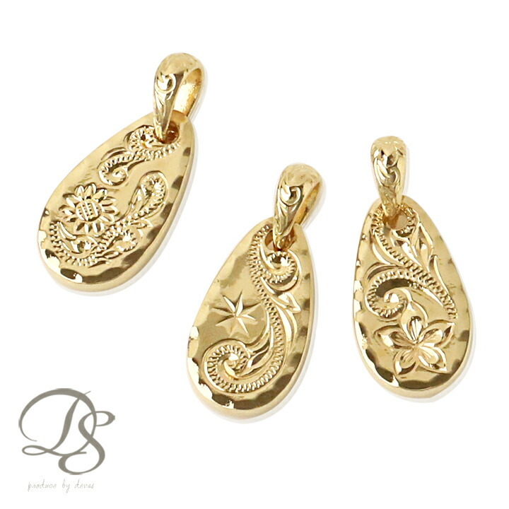 ユニークなドロップシェイプにハワイアンジュエリーの彫り模様が施されたペンダントトップ。