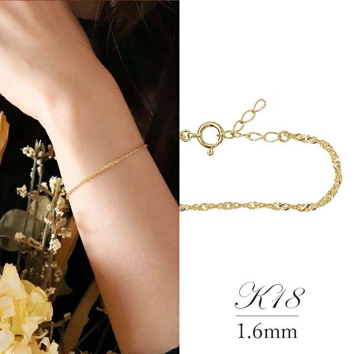 【土日限定2000円OFFクーポン有】 18金 ブレスレット k18 18金ブレスレット 18k レディース スクリューチェーン 1.6mm シンプル 18 金 k18ブレスレット