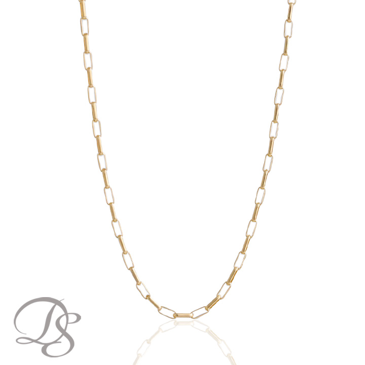 | 角が丸い縦長のデザインが特徴なフィガロチェーン。 華奢でありながら程よい存在感もありゴールドならではの輝きが上品な印象を与える。 |
