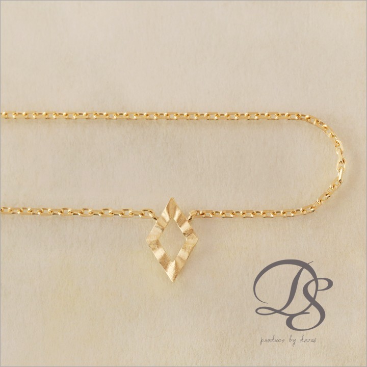 ![]() 【モデル着用感想】 モチーフは華奢ながらも存在感があり、何より繊細な作りが独特な輝きを放ちとっても上品! チェーンは少し安心感のある1.2mm幅のちょうどよい太さで、光の加減でさりげなく上品に輝く大人仕様。 お守りモチーフのひし形は、着けているだけで何だか守られているように感じます♪ |