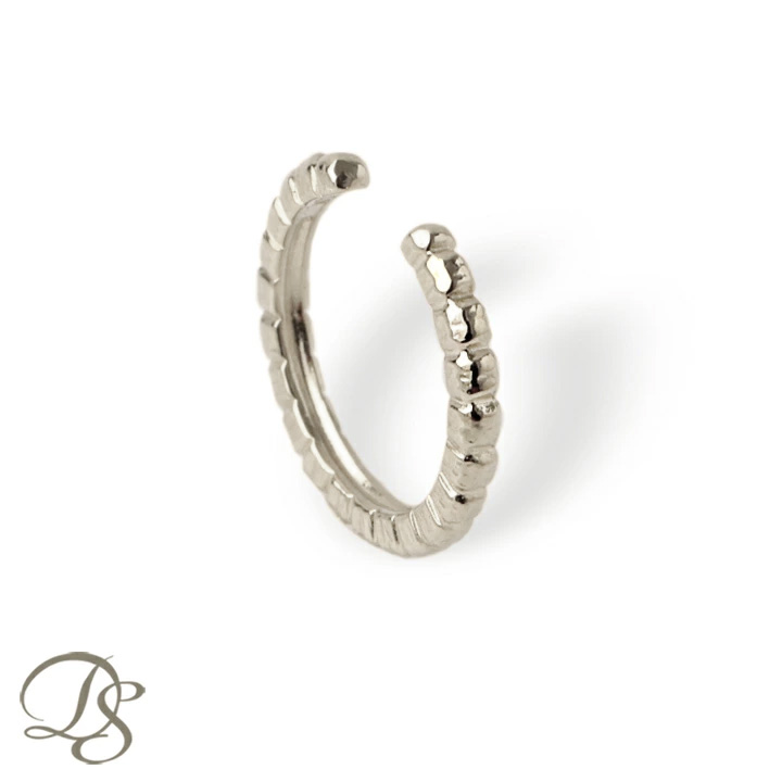| ピアスホールが無い箇所にも気軽に身に着けられるイヤーカフはひとつ有るとスタイルの幅が広がる万能アイテム。 無機質でいれ無造作に四角いブロックを連ねたデザイン。ダメージ感のあるテクスチャーを意識しゴールドが本来持つ輝きを引き出す。イヤーカフでは少し珍しくK18素材を活かしたゴールドジュエリー。 |