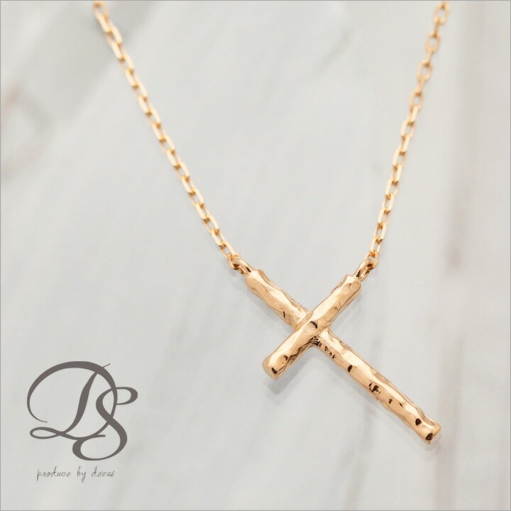 K18ピンクゴールドの地金のみで作った、クロスのシルエットネックレス。