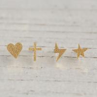 | ■サイズ クロス:縦8mm × 横5.5mm × 厚み2mm 稲妻:縦8.5mm × 横5mm × 厚み2mm ハート:縦6.7mm × 横6.7mm × 厚み2mm スター:縦7mm × 横6.5mm × 厚み2mm ポスト:長さ10mm × 太さ0.65mm ■素材 K18ゴールド(18金) K18ピンクゴールド(18金) ※無垢 (中空ではありません) ※ニッケルフリー(ニッケルは含まれておりません) ■販売単位 1セット2個(両耳分)販売となります ■加工について 表面のキラキラと輝く加工は、自社工場にて特殊な技術にて直接地金(K18ゴールド)に加工を施してあります。 コーティングなどではありませんので、剥がれたり取れるようなことはなく、いつまでも同じ状態のままお使いいただけます ■付属品 K18ゴールド シリコン製キャッチ |