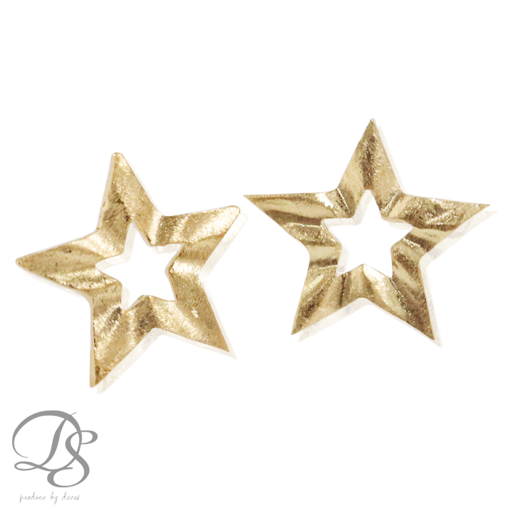 K18ゴールドの地金が輝く、オープンスターのピアス。