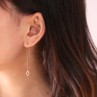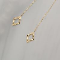 | シャープなのひし形モチーフがクールな印象を演出してくれるアメリカンピアス。 シルク仕上げのテクスチャと長めのチェーンが上品でおしゃれなアイテムです。 |