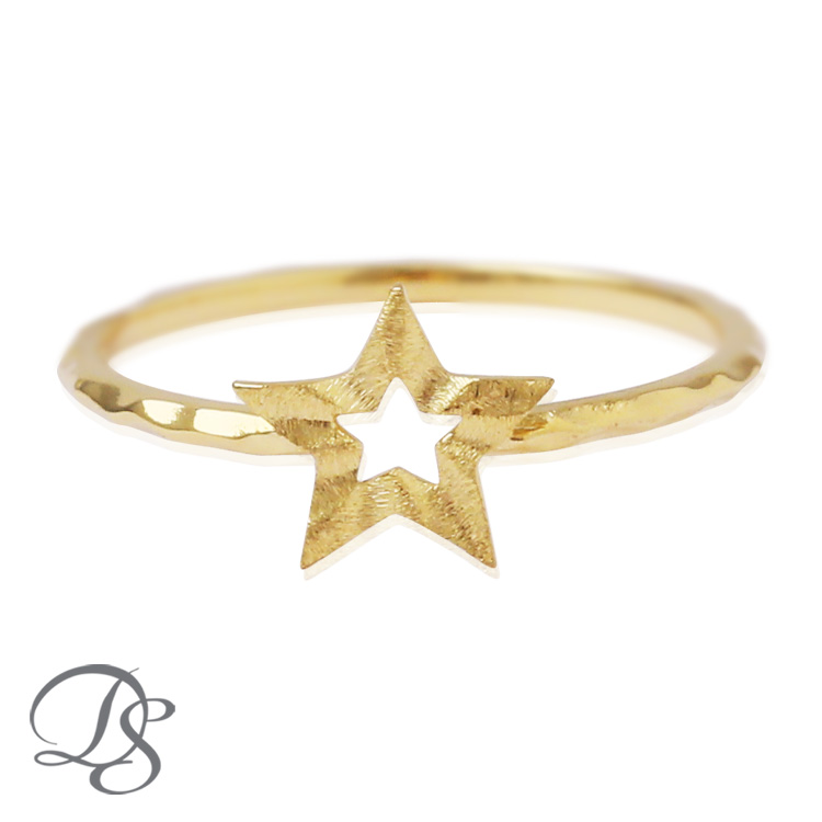 | オープンスターが個性的なリング。 子どもっぽく見えがちのモチーフですが、シルク仕上げのテクスチャが上品で大人の女性にもおすすめできるアイテムです。 |