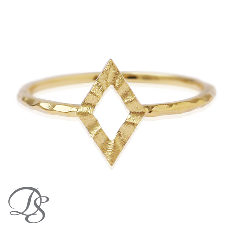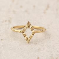 | 縦長のひし形が指をすっきりと見せてくれるリング。 シャープなモチーフはクールな印象を演出してくれます。 シルク仕上げのテクスチャが上品で大人の女性にもおすすめできるアイテムです。 |