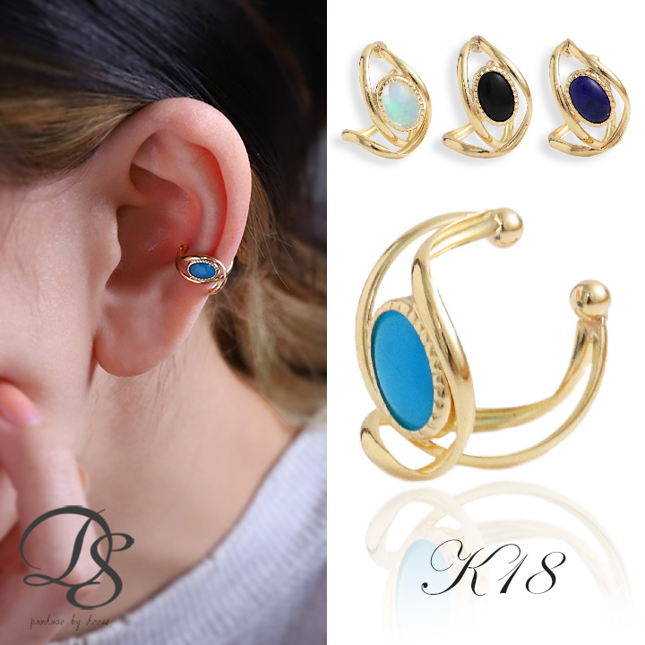 イヤーカフ 18金 イヤカフ k18 18k レディース ノンホール ピアス 天然石 ターコイズ オニキス ノンホールピアス