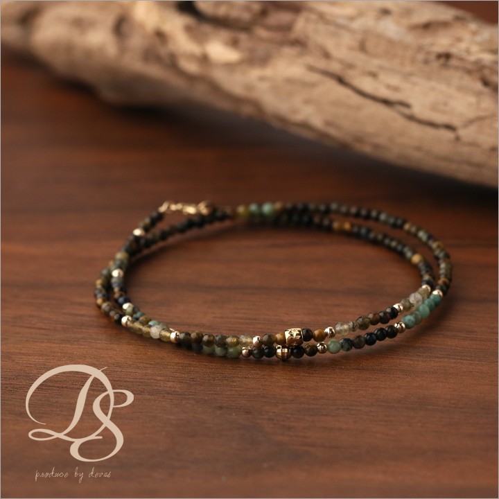 ![]() 【デザイナーによる解説】 「タイガーアイをオシャレに」がコンセプトの天然石2連ブレスレット。 こだわりの配色にゴールドパーツを添える事でシンプルを格上げ。 シンプルさを求めながら、大人の風格漂うアイテムとして相応しい仕上がりに。 |