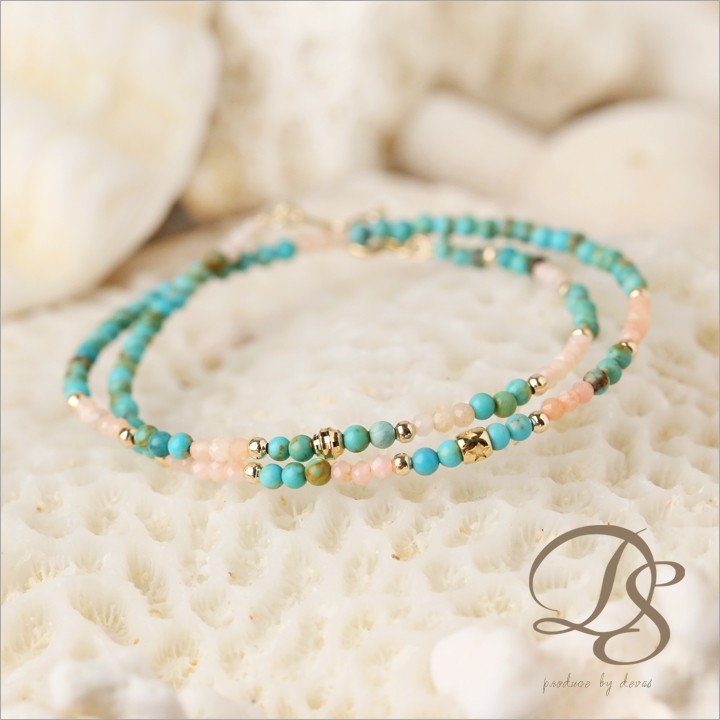 ![]() 【関連商品】 1.オレンジアベンチュリン×ターコイズ 2.ターコイズ×ピンクオパール(当ページ) 3.マルチジェイド×マザーオブパール |