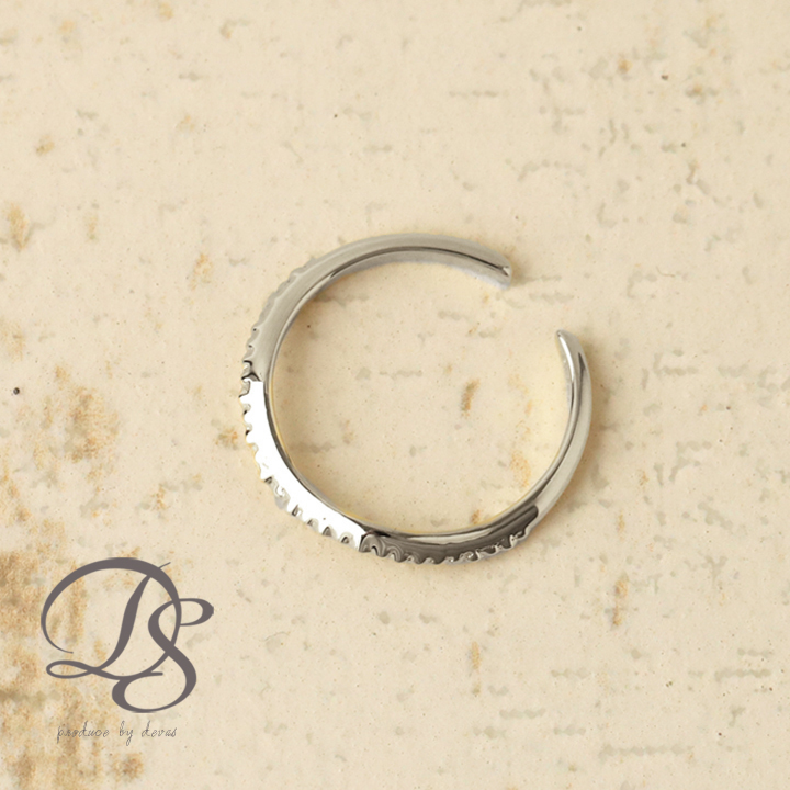 C型形状で厚みのあるイヤーカフのため、付ける方次第ではピンキー(小指)にも装着可能。おおよそ0号〜2号程度のリングをお使いの方は、2wayでお楽しみいただけます。