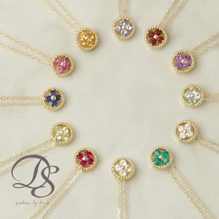 | 「 デザイナーより 」 12石の誕生石から選べる、アンティーク感漂うK18ゴールドネックレス。 デザインは宝石を惹きたてるようにシンプルでありながら、 さりげなくオシャレな印象を与えるミル打ち風アンティークデザイン。 4石の宝石はフラワーにも見えるようにデザイン致しました。 「 スタッフより 」 サイズは小ぶりですが、宝石が上品に輝き、流行に左右されないデザインは、 大人のさりげないネックレスとして、毎日着けても嫌味にならなず、宝石ジュエリーをお楽しみ頂けます。 |