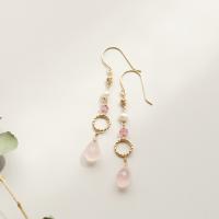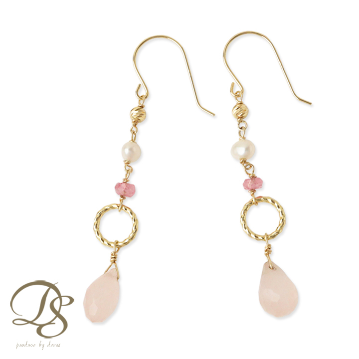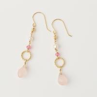 天然石はピンクトパーズとローズクオーツ、淡水パールを使用。