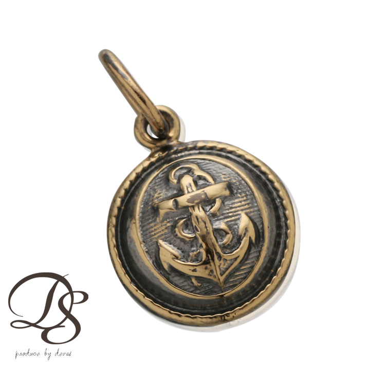 | コインペンダントの中に浮かぶ立体的な錨(アンカー)、背景の縞模様など、細部までこだわり抜いたデザイン。 さらに独特な風合いが目を引き、存在感もばっちりです。 |