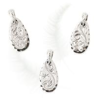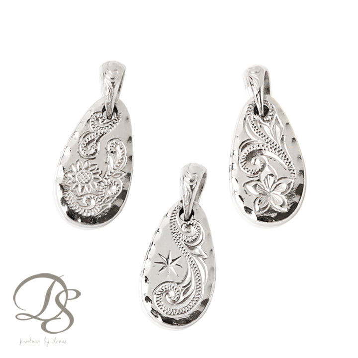 ユニークなドロップシェイプにハワイアンジュエリーの彫り模様が施されたプラチナペンダントトップ。