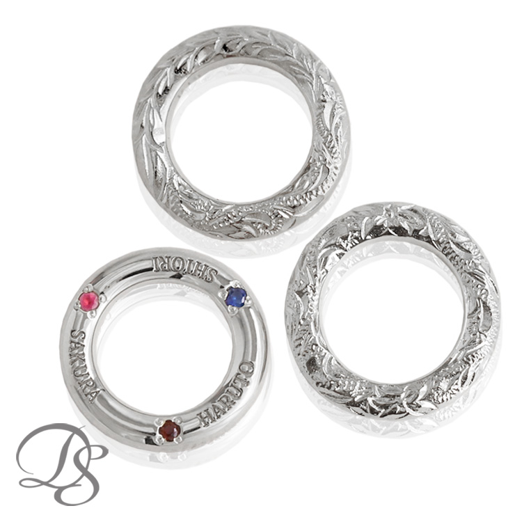 また、裏面オプションにて名入れ刻印や誕生石を入れられ、ベビーリング・ペアジュエリーとしても。