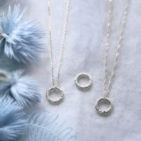 彫り模様が角度によって光を反射しキラキラと輝き、シンプルなサークルリングペンダントでも華やかさを演出してくれます。