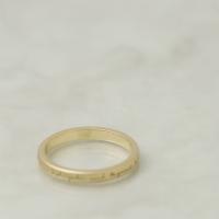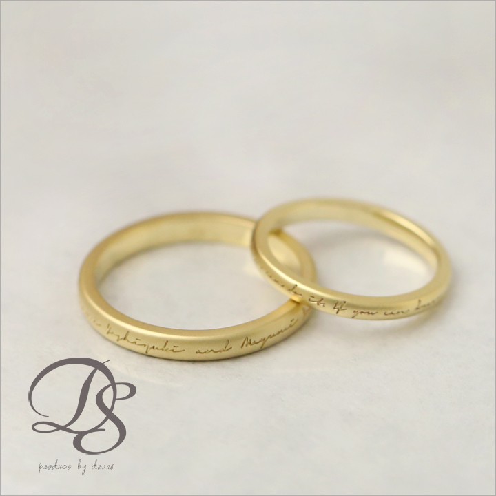 | ■サイズ 幅2mm/厚み1.6mm 幅2.5mm/厚み1.8mm ※仕上げにより多少誤差が生じます ■展開サイズ 【幅2mm】 1号・2号・3号・4号・5号・6号・7号・8号・9号・10号・11号・12号・13号・14号・15号・16号・17号・18号・19号・20号 【幅2.5mm】 11号・12号・13号・14号・15号・16号・17号・18号・19号・20号 ■素材 K18 [ゴールド/ピンクゴールド/ホワイトゴールド(コーティングなし)] ※無垢 (中空ではありません) ※ニッケルフリー(ニッケルは含まれておりません) ■0.5号刻みでの生産について 当店ではお客様に少しでもジャストサイズでリングをお着けいただきたく、0.5号サイズでのご注文も承っております。 ※別注サイズ生産となりますので、サイズ交換はお受け致しかねます。 ※ご注文時の備考欄に、ご希望のサイズを記載お願い致します。 ※別途追加代金につきましては、0.5号上のサイズに準じます。 ■ご注意点 ・お届け後のサイズ交換について 完全受注生産品のため、商品お届け後の無料サイズ交換はお受け出来かねます。商品の構造上、新たに一から商品をお作りする事となります。お作り直しの代金につきましては、その都度お見積もりをさせていただきますので、ご希望の際は、まずは当店までご連絡くださいませ。 また、サイズが変更になると、当初のリングと比べ刻印文字数が増減し、終わりの文字が変わる可能性が御座います。職人が1点1点商品を仕上げている関係上、当初お届けした商品よりも、文字間などが当初のリングと異なる場合が御座います。ただし、出来る限り当初と同じ仕上げとなるよう対応致します。 ・しばらくご利用後にサイズお直しする場合(マット加工の場合) 使用感がある場合は、新品交換後に見た目(輝き具合)が異なり、マットっぽい印象に戻る場合が御座います。 マット仕上げの場合、通常使い込んでいく内にマット感が薄れ、少し光沢感が強くなってくる仕様のためです。 商品について、少しでもご不安な点やお悩みなど御座いましたら、info-y@devas.co.jp よりお気軽にお問い合わせくださいませ。 ■その他 ・リングのサイズの測り方&サイズ別イメージ画像はコチラ ・サイズ交換無料、詳しくはコチラ ■関連商品 ・幅2mmはこちら ・幅2.5mmはこちら |