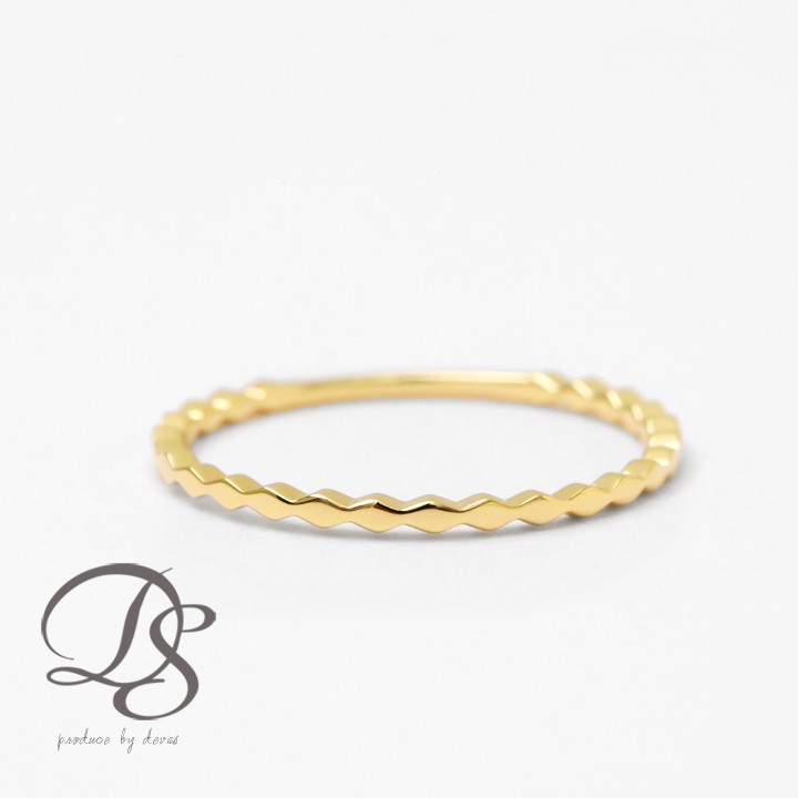 ![]() 均一に並べられた小さなひし形が光を反射し、細身ながらも存在感を放つ。 一見するとシンプルながらも計算されたリングは、大人のオシャレに。 |