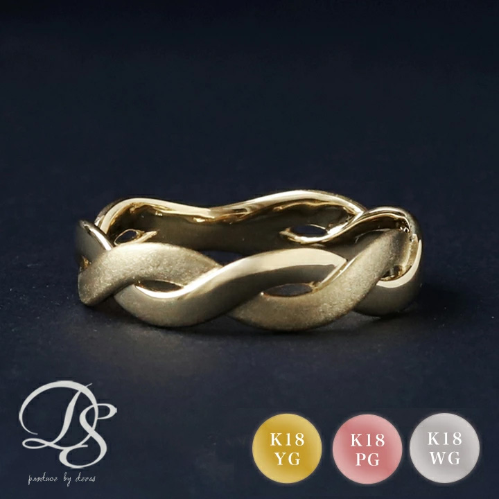 【土日限定8000円OFFクーポン有】 18金 リング k18 k18リング 編み編み ツイスト クロス 18k 指輪 レディース 18金指輪 18金リング 幅広 ピンクゴールド