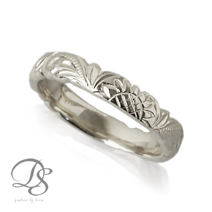| しっかりとした厚みと重量感あるリングに、繊細な模様が印象的な、こだわりの詰まったデザインリング。 |