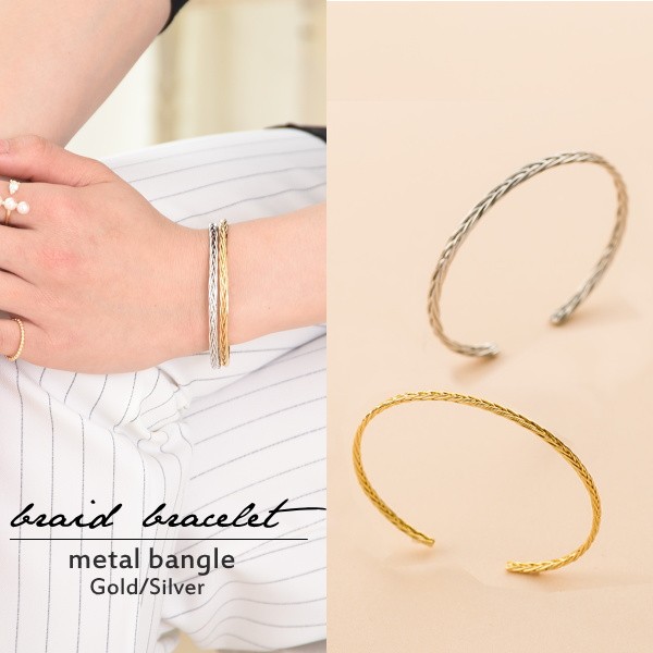 ラインメタルバングル 編み込みデザイン ブレスレット
