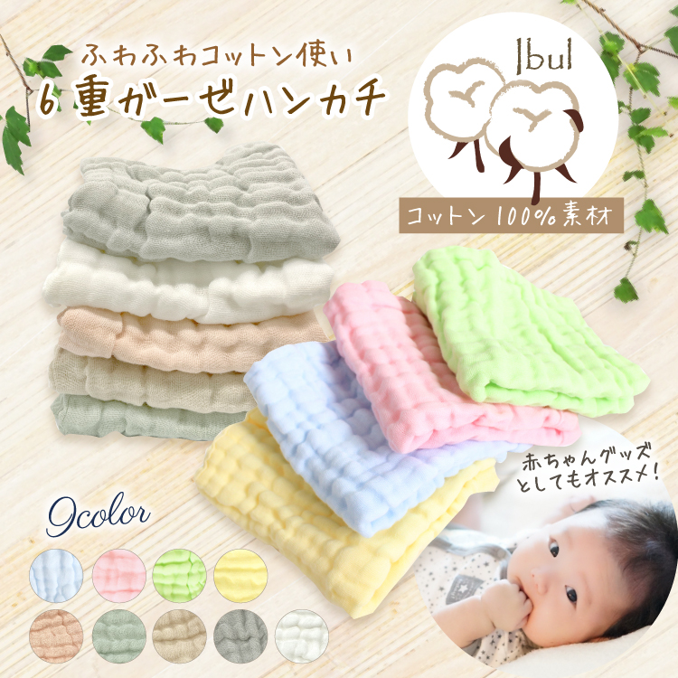 6重ガーゼハンカチ ベビー 赤ちゃん ガーゼ 綿 コットン100% 人気 ふわふわ やわらか ばらまき お礼の品 ギフト